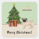 Sticker Carré Carlin Faune Mignonne Caricature Chien Avec Arbre
