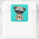 Sticker Carré Carlin mignon Chien Chien Portant des lunettes de