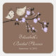 Mignons inséparables autocollant carré Fête des mariées avec des oiseaux mariés et mariés assis sur une branche avec des fleurs lilas lavande sur un arrière - plan chocolat. Idéal pour les étiquettes de douches nuptiales et les scellés d'enveloppe ! Customisez avec vos informations de douche nuptiale et vous êtes tous prêts à partir ! Invitations et timbres-poste correspondants disponibles dans notre boutique www.celebrateitinvites.com.