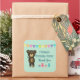 Un autocollant de remerciement pour une fête d'anniversaire ou une autre occasion spéciale. Illustration simple d'un ours brun caricaturé tenant une marguerite jaune. Banderole colorée et quelques boîtes cadeaux et cupcakes ajoutent également à l'ambiance festive de ce design. Personnalisez avec votre propre texte.