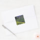 Sticker Carré Cascade et fleurs sauvages dans la prairie alpine,