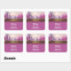 Anniversaire merci autocollants avec une image pittoresque d'un lac violet paisible. Entouré de cerisiers luxuriants et de cascades.