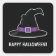 Sticker Carré Casquette de la sorcière d'Halloween avec texte po