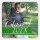Classe de n'importe quel autocollant photo de fin d'année avec bannière ruban vert de varsité et photo couleur complète. L'autocollant de bannière est disponible dans une variété de couleurs scolaires.