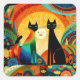 Abstract colorful artwork of two cats against a vibrant stylized background.