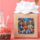 L'adorable Roi Cavalier Charles Spaniels habillés de costumes d'Halloween ludiques portent des seaux citrouilles tout en trompant ou en traitant sous le ciel illuminé par la lune. Ce design festif met en valeur le manteau soyeux, l’expression douce et la personnalité affectueuse de la race, capturant parfaitement l’atmosphère éffrayante et amusante de la nuit d’Halloween. Une charmante fête pour les amoureux de les chiens comme pour les fans d'Halloween.