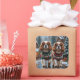 This festive design captures the joyful spirit of the holiday season, featuring an adorable dogs.Nestled in a winter wonderland, complete with a decorated Christmas tree, and beautifully wrapped presents. Snowflakes gently fall, adding a magical touch to the scene, while the vibrant colors of the holiday decorations create a warm and cheerful atmosphere.