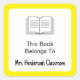 Vous pouvez modifier le texte de cet autocollant jaune et blanc pour afficher votre message personnalisé. (Montré : Ce livre appartient à la classe de Mme Henderson) Le nom de l'enseignant est en caractères décontractés de style manuscrit.