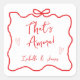 Ajoutez une touche personnelle et amusante à la fête de mariage de votre couple avec ces autocollants personnalisés, conçus pour un thème italien "That's Amore" ! Avec un design ludique inspiré des dessins au stylo, ces autocollants présentent un cadre ondulé dessiné à la main avec un joli nœud, le tout dans un rouge vibrant. La police de caractères manuscrits lui donne un charme griffonné, parfait pour une célébration joyeuse de l'amour. Personnalisez avec les noms du couple pour un souvenir unique qui peut être utilisé pour sceller les invitations, décorer les cadeaux de fête, ou ajouter une touche à vos sacs cadeaux. Ces autocollants apportent une atmosphère romantique et légère à votre jour spécial, capturant l'esprit amusant de l'amore italien. Parfait pour les couples qui veulent rendre leur fête de mariage inoubliable et unique !