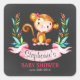 Sticker Carré Chalkboard Aquarelle Singe Baby shower Fille