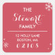Festif et moderne étiquette de adresse de vacances rouge avec des flocons de neige à craie dessinés à la main, parfait pour sécuriser vos enveloppes de voeux de vacances.