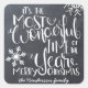 Beau autocollant de vacances basé sur la typographie. "C'est la période la plus merveilleuse de l'année" apparaît dans la typographie à lettres blanches sur un arrière - plan de tableau noir gris fusain agrémenté de flocons de neige blancs.