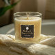 un étiquette de luxe pour bougies parfumées en cire d'abeille avec un arrière - plan noir et une bordure en or avec espace pour votre logo.