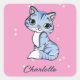 Sticker Carré Chat bleu mignon sur nom personnalisé rose