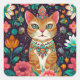 Sticker Carré Chat couronné bijou