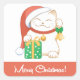 Sticker Carré Chat de Noël blanc dans un Casquette rouge