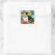 Sticker Carré Chat mignon avec Fleurs Jaunes Art populaire