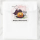 Sticker Carré Chat noir à la caricature Happy Halloween