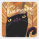 Sticker Carré Chat noir bon thanksgiving automne