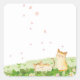 Sticker Carré Chats amusants chantant sous les fleurs de cerisie