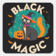 Sticker Carré Chatte sorcière magique noire, Halloween thème des