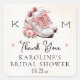 Magnifiques autocollants de remerciement pour enterrement de vie de jeune fille sur le thème des fleurs et des chaussures de course à l'aspect aquarelle. Célébrez la future mariée avec ce magnifique design vintage au look peint à la main sur le thème de la course à pied. Des florales élégantes de couleur rose poudré et une paire de charmantes chaussures de course roses et blanches ajoutent une touche féminine à cette étiquette de faveur d'enterrement de vie de jeune fille. Ajoutez les initiales et le monogramme du futur marié et de la future mariée de chaque côté des chaussures de course. Ce design est parfait pour toute future mariée amoureuse de marathon qui se précipite vers le "oui !" Conçu par Chrissy H. Studios, LLC. Tous droits réservés.