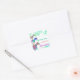 Fête d'anniversaire d'animal de ferme de chèvres merci personnalisées autocollant de faveur. Chèvres d'art animal colorées uniques debout sur des choses avec de beaux arrière - plan turquoise et bleu aquarelle. Un autocollant de remerciement, idéal pour un animal de basse-cour sur le thème de toute fête d'anniversaire d'âge. La typographie moderne avec est pour customiser les modèles avec des mots "Merci pour fêter mon anniversaire avec moi" avec le nom d'un enfant sur mesure. OEuvre originale de l'artiste Catherine Sweetman
