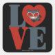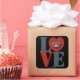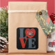 Découvrez Chibi Catwoman à l'intérieur d'un coeur rouge qui représente le "O" dans ce logo empilé "LOVE".