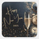 Stylish Happy New Year stickers feature a champagne glass, clocks, confetti and fireworks on a midnight blue background. MATCHING items in our collection.