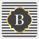 Sticker Carré Chic noir et blanc bande or Monogramme