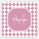 Sticker Carré Chic rose et blanc coché Nom monogrammé