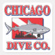 Chicago Dive Company - Une chemise de plongée sur le thème du requin avec un skyline de Chicago derrière elle