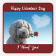 La photo adorable d'une jolie pooche tenant un rose dans sa bouche, est présentée sur cet autocollant carré. Sticker dit, "Heureuse Sainte-Valentin et moi "Malheur" à vous" ! Un autocollant sucré à envoyer sur cet envoi spécial, ou la décoration et la ferraille réservation avec. Ce design est également disponible en tant que carte de voeux Valentine !