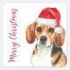 Sticker Carré Chien beagle Père Noël Mignonne Joyeux Noël