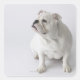 Chien blanc anglais Bulldog assis en studio, vue surélevée | LWA | AssetID : 73119046