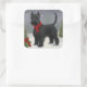 Sticker Carré Chien de Terrier écossais en Noël de neige