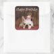 Sticker Carré Chien-taureau français avec Cupcake d'anniversaire