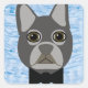 Sticker Carré Chien-taureau français gris, aquarelle bleu