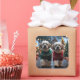 Cette conception festive capture l'esprit joyeux de la saison des fêtes, mettant en vedette des chiens adorables.Nichés dans un pays des merveilles hivernal, avec un arbre de Noël décoré et des cadeaux magnifiquement emballés. Les flocons de neige tombent doucement, ajoutant une touche magique à la scène, tandis que les couleurs vives des décorations de Noël créent une atmosphère chaleureuse et joyeuse.