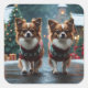 Ce design festif capture l'esprit joyeux de la saison des fêtes, mettant en vedette des chiens adorables.Nichés dans un pays des merveilles hivernal, avec un arbre de Noël décoré et des cadeaux magnifiquement emballés. Les flocons de neige tombent doucement, ajoutant une touche magique à la scène, tandis que les couleurs vives des décorations de Noël créent une atmosphère chaleureuse et joyeuse.