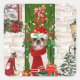Chih Tzu Dog Noël assis à l'extérieur de la maison décorée avec la couronne de Noël, le sapin de Noël est une idée cadeau de Noël parfait pour les amoureux de les chiens.