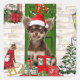 Chihuahua Chien assis à l'extérieur de la maison décorée avec la couronne de Noël, le sapin de Noël est une idée cadeau de Noël parfaite pour les amoureux de les chiens.