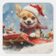 Sticker Carré Chihuahua Dog in Sledge Let it neiger Noël