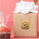 Dragon jaune (doré) en origami en arrière - plan "doré" (modèle n°3) avec "Année du Dragon", 2024, salutation dorée en chinois et en anglais. Conception sur autocollant carré. Carte de voeux correspondante. Parfait pour le bois chinois Dragon Année 2024.