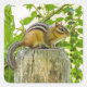 Un mignon chipmunk pose pour la caméra sur un poteau de clôture en bois.