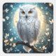 Sticker Carré Chouette À Neige Et Lune Avec Étincelle,