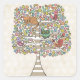 Sticker Carré Chouette chatte et oiseaux dans un arbre Illustrat