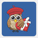 Sticker Carré Chouette mignonne avec béret rouge et boîte cardia