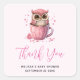 Des autocollants de Merci d'événement, avec une adorable image d'un hibou assis dans une tasse à café. Des coeurs se balançant et un seul rose placé au fond de la tasse.