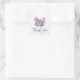 Des autocollants de Merci avec l'image d'une paire de chouettes amoureuses, assis ensemble sur une branche d'arbre. Entouré de jolies fleurs bleues, vertes et roses.